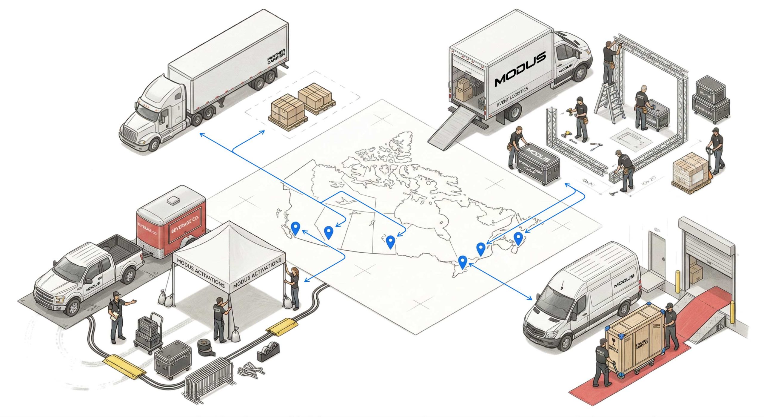 We handle experiential and event marketing logistics across Canada—from one-off pop-ups to multi-city tours. That includes storage, skilled labour, freight, on-site setup/tear-down, and deliveries. If it involves moving or managing assets for a campaign, we can handle it. Let’s hope it never gets to the worst-case, but we also have above-industry standard insurance.